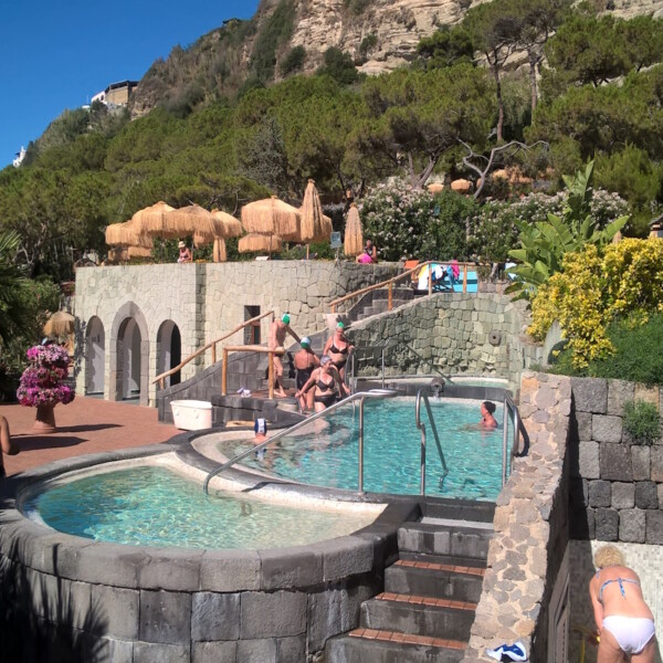 Искья известна своими отелями с термальными источниками. Это уникальное сочетание размещения и лечебной инфраструктуры делает отдых на острове особенным. Многие гостиницы располагают собственными бассейнами с термальной водой, которая подается напрямую из природных источников, насыщенных минералами и серой.