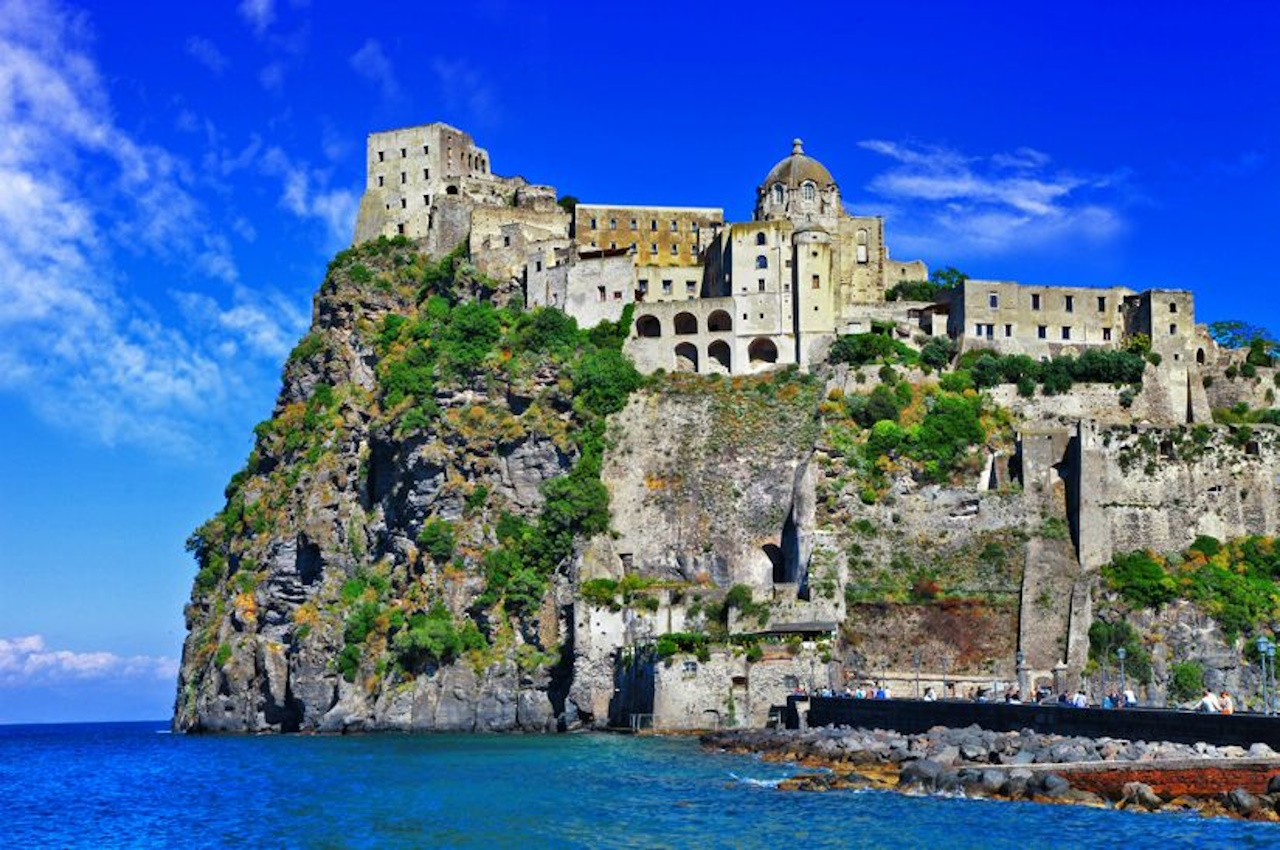 Несмотря на небольшой размер, Искья предлагает множество достопримечательностей. Главный символ острова — Арагонский замок, построенный на вулканической скале. Крепость соединена с берегом мостом и открыта для туристов. С ее смотровых площадок открываются панорамы моря и окрестностей.