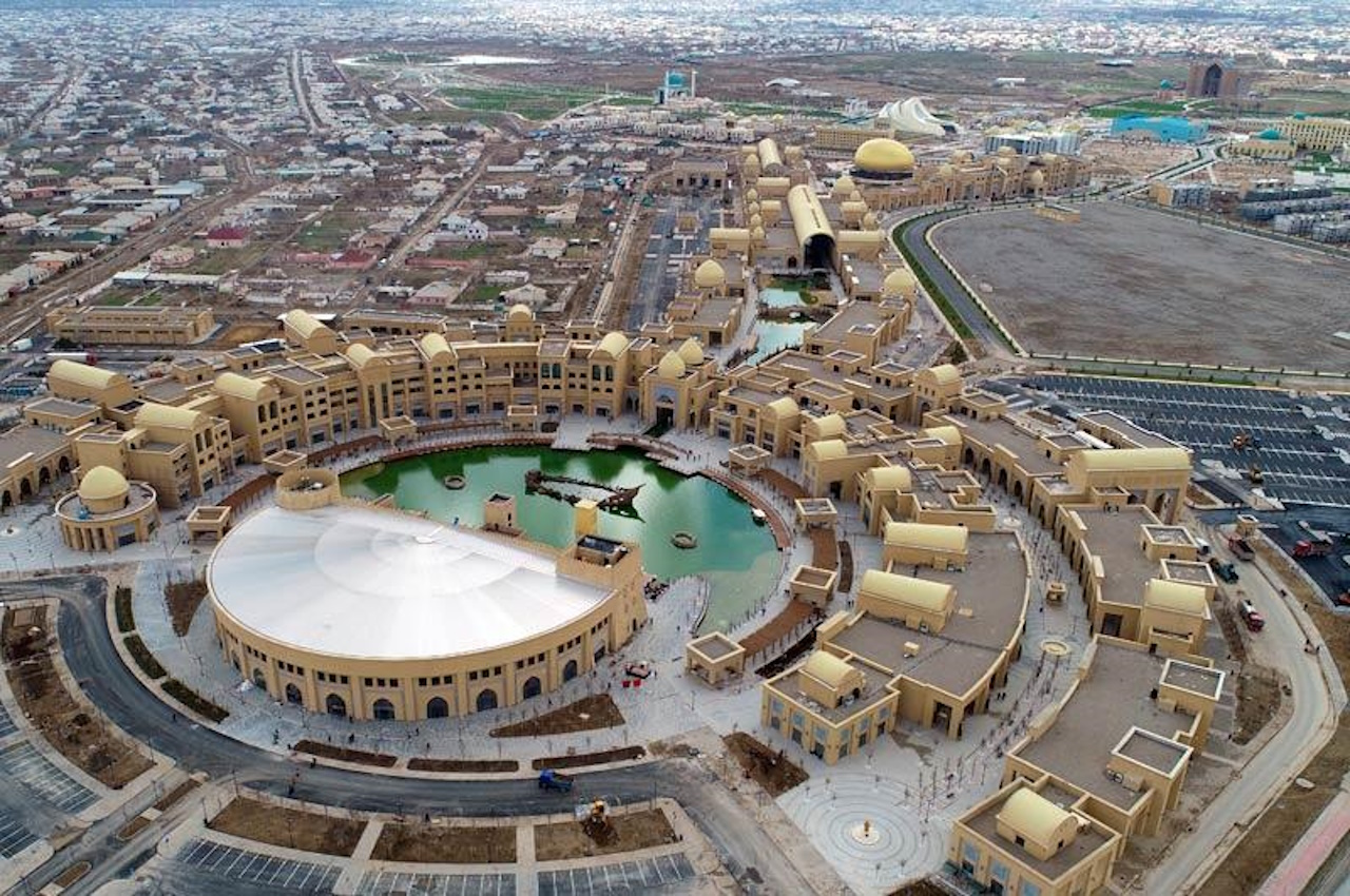 Современный символ Туркестана — Караван-сарай, грандиозный культурно-развлекательный комплекс в восточном стиле. Внутри расположены отели, рестораны, театры, фонтаны и даже искусственная река, по которой можно прокатиться на лодке.