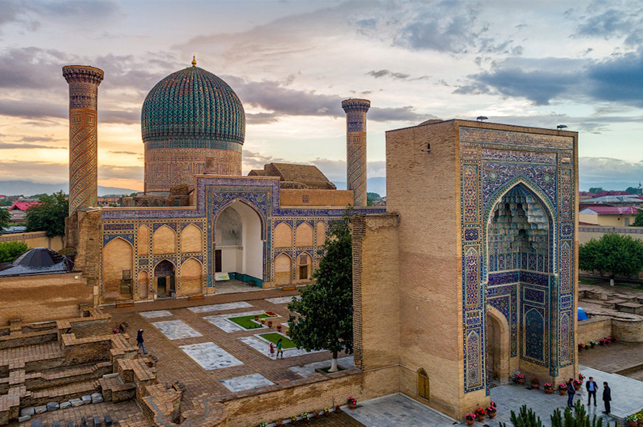 Не менее впечатляюща гробница Гур-Эмир, где покоится великий полководец Тамерлан. Архитектура мавзолея поражает изяществом — лазурные изразцы, изысканная каллиграфия и мягкий свет создают атмосферу торжественного спокойствия.